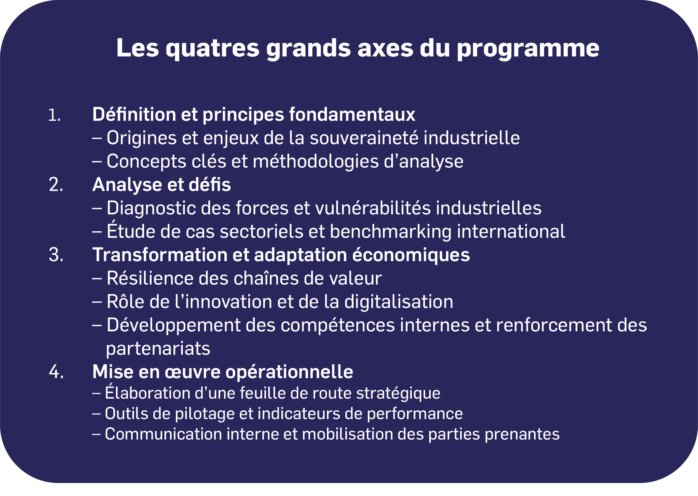 • comprendre les fondamentaux et les concepts liés à la souveraineté industrielle,